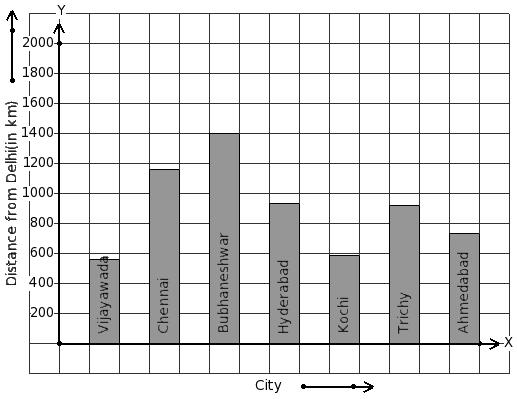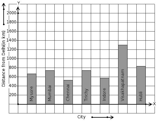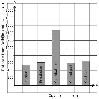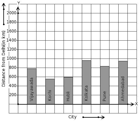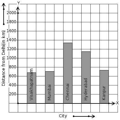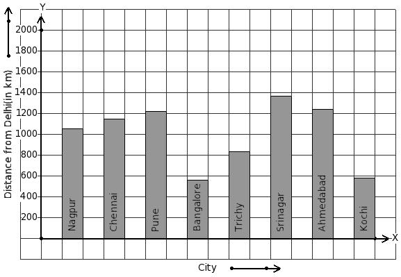 The air distance of some cities from Delhi (in km) are given below. Find the city that has maximum distance.