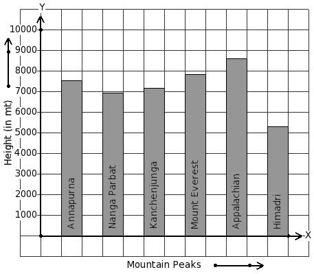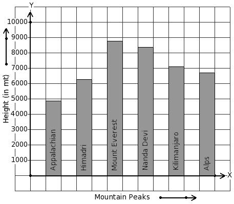 Given below is the column-graph showing heights of some mountain peaks. Find the mountain that has maximum height.