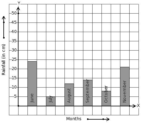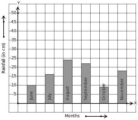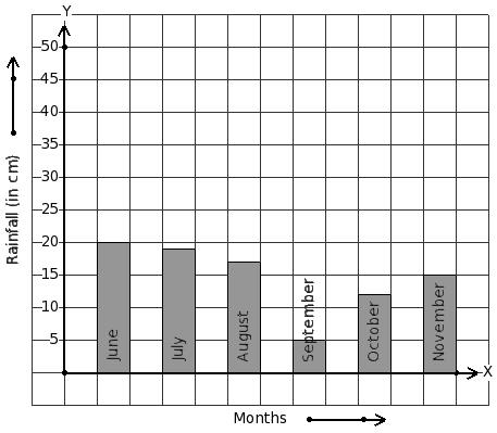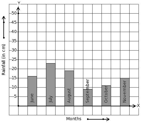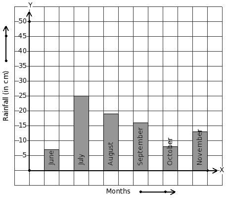 Read the given column-graph. Find the month that has 19 cm rainfall.