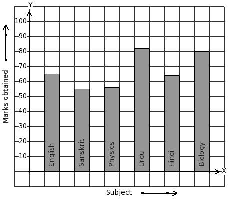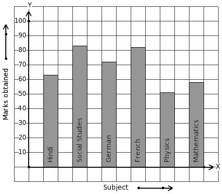 The marks obtained by Abhishek in his annual exam are shown below. Find the subject that has minimum score.