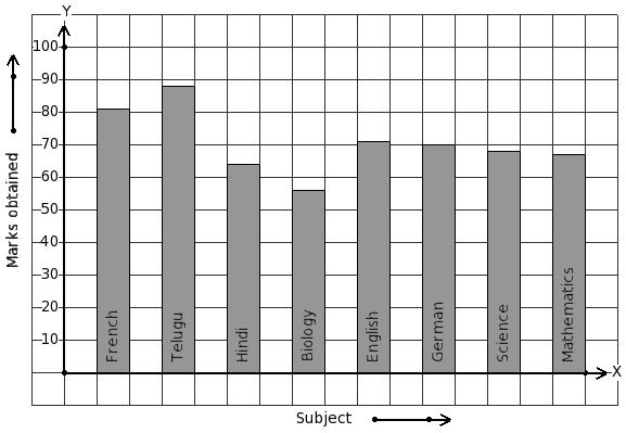 The marks obtained by Varun in his annual exam are shown below. Find the subject that has 69 score.
