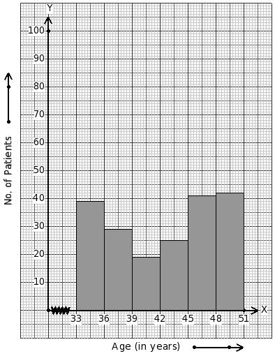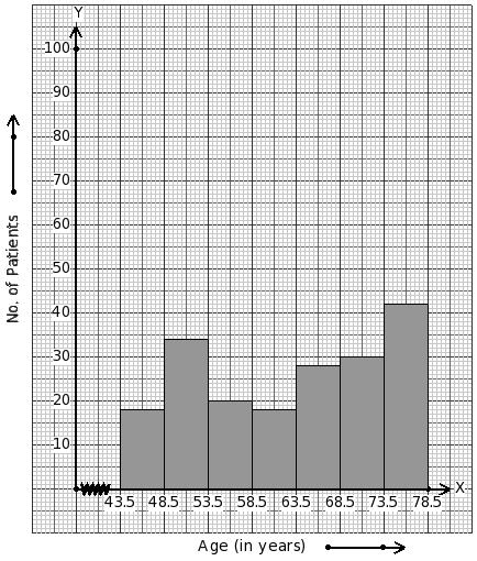 In a study of heart patients, the following observations are obtained. Identify the class interval table for the given histogram.