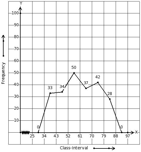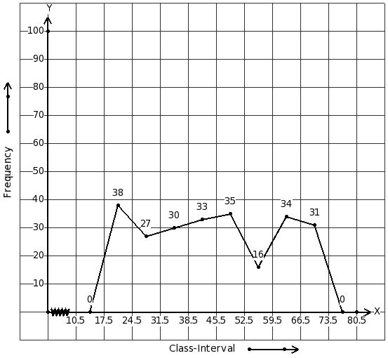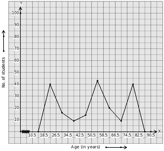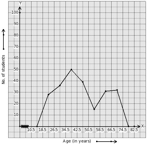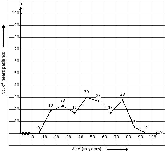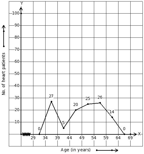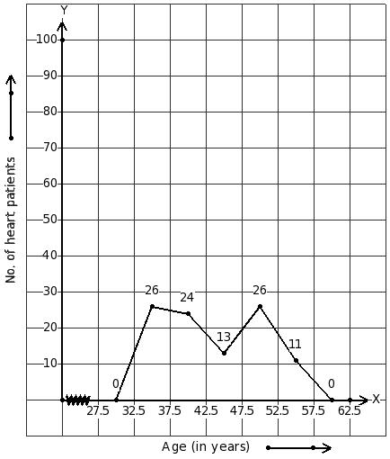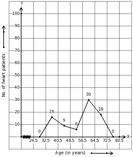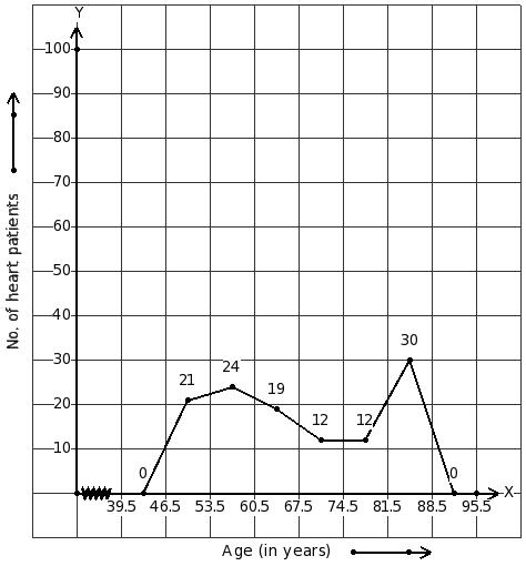 Given frequency polygon showing the number of heart patients at various age groups, identify the class interval table.