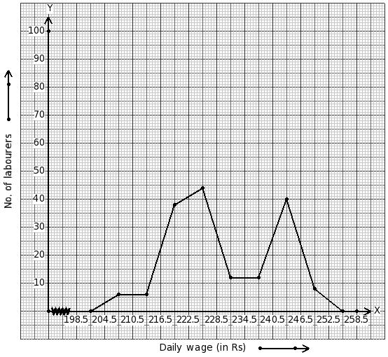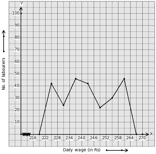 Daily wages of 166 labourers (in ₹) are given below.