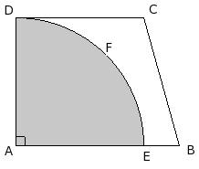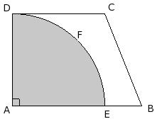 In the given figure , ABCD is a trapezium. A quarter circle AEFD is removed from the trapezium. If AD = CD = 14 and EB = 3.9 , find the area of the remaining portion