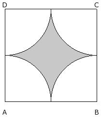 In the given figure, ABCD is a square of side 19.00 cm and A, B, C, D are the centres of circular arcs, each of radius 9.50 cm. Find the area of the shaded region