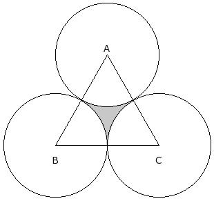 In the given figure △ABC is an equilateral triangle whose area is 97.43 sq.cm. With each vertex of the triangle as center, a circle is drawn with radius equal to half the length of the side of the triangle . Find the area of the shaded region