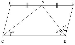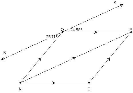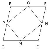 CDEF is a rhombus. M, N, O and P are mid-points of sides CD, DE, EF and FC. Find ∠NOP