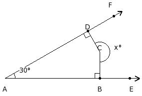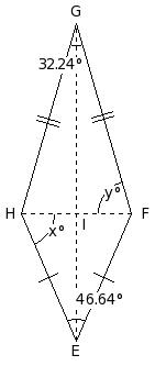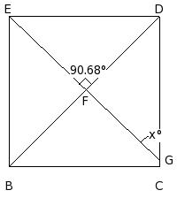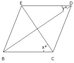 In the given figure, BCDE is a rhombus. Given x = 56°, find the value of 'y'.