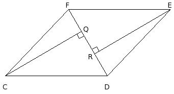 In the given figure, CDEF is a parallelogram. CQ and ER are perpendicular to the diagonal DF. Given ∠REF = 30°, find ∠FDC