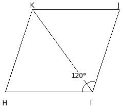 In the given figure, HIJK is a rhombus such that ∠I = 120°. Then △HIK is