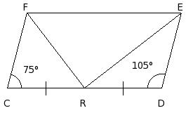 In the given figure, CDEF is a parallelogram such that R is the mid-point of CD and CD = 2FC. Find ∠FRE