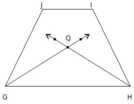 GHIJ is an isosceles trapezium. GQ and HQ are angular bisector of ∠G & ∠H. If ∠G = 64°, find ∠GQH