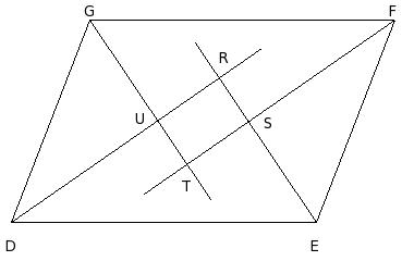 In the given figure, DEFG is a parallelogram. The bisector of the angles D, E, F & G intersect at R, S, T & U to form a quadrilateral. Find ∠TUR