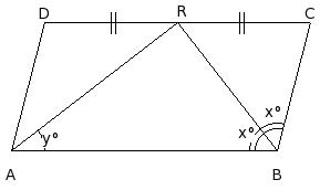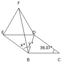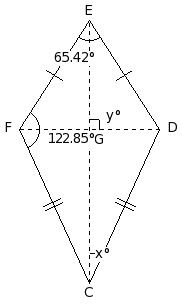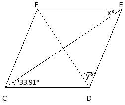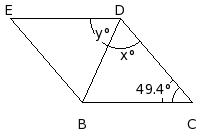 In the given figure, BCDE is a rhombus. Given x = 56°, find the value of 'y'.