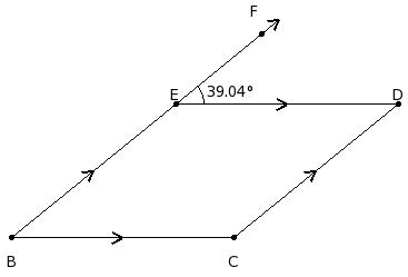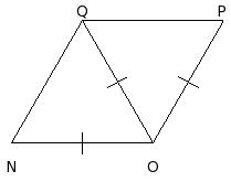 CDEF is a rhombus. N, O, P and Q are mid-points of sides CD, DE, EF and FC. Find ∠OPQ