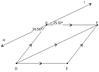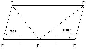 In the given figure, DEFG is a parallelogram such that P is the mid-point of DE and DE = 2GD. Find ∠GPF