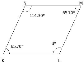 Two adjacent angles of a parallelogram KLMN are in the ratio 15 : 21. Find the measure of each of its angles.