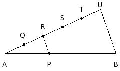 In the given figure, if A, Q, R, S, T, U are equidistant and RP ∥ UB and AB = 22 cm and AP = 9 cm. Find PB