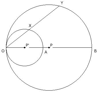 In the given figure, the two circles touch each other internally.