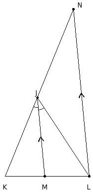 In the given figure, △KLM is isosceles right-angled at L and LN ⟂ MK. ∠NKL ≠