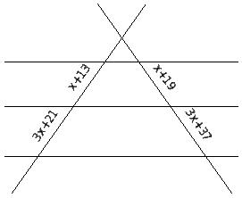 In the given figure, three lines l , m and n are such that l ∥ m ∥ n.