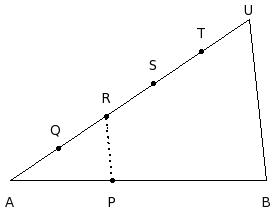 In the given figure, if A, Q, R, S, T, U are equidistant and RP ∥ UB and AB = 26 cm. Find AP