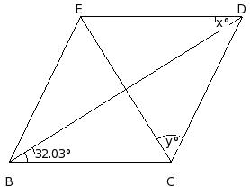 BCDE is a rhombus. P, Q, R and S are mid-points of sides BC, CD, DE and EB. Find ∠QRS