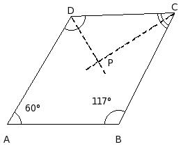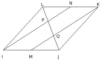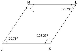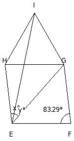 HIJK is an isosceles trapezium. HT and IT are angular bisector of ∠H & ∠I. If ∠H = 69°, find ∠HTI