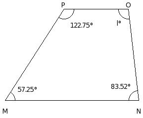 The angles of a quadrilateral LMNO are in the ratio 19 : 8 : 25 : 68. Find the measure of each angle of the quadrilateral.