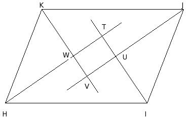 In the given figure, HIJK is a parallelogram. The bisector of the angles H, I, J & K intersect at T, U, V & W to form a quadrilateral. Find ∠UVW