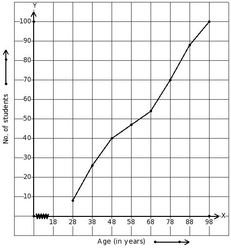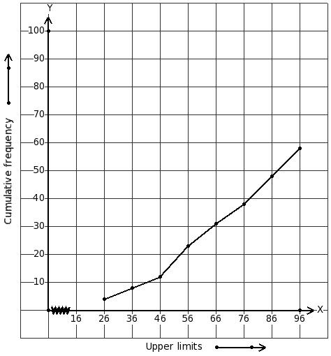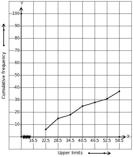 upper boundaries of classes and less than cumulative frequencies