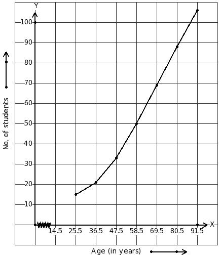 mid values of classes and less than cumulative frequencies