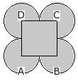 In the given figure, ABCD is a square of side 5.00 cm and A, B, C, D are centres of circles which touch externally in pairs. Find the area of the shaded region