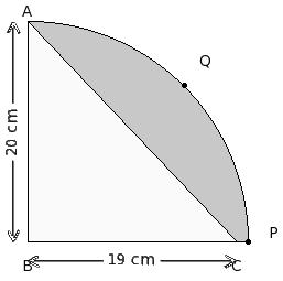 In the given figure, the circle circumscribes a rectangle with sides 19.00 cm and 15.00 cm. Find the area of the remaining portion other than the rectangle