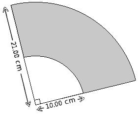 In the given figure, the width of the circular path is 10.00 m. Find the area of the shaded region