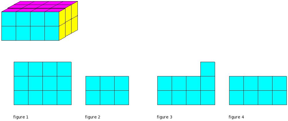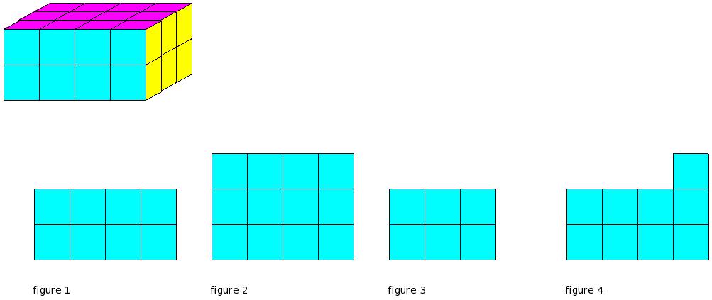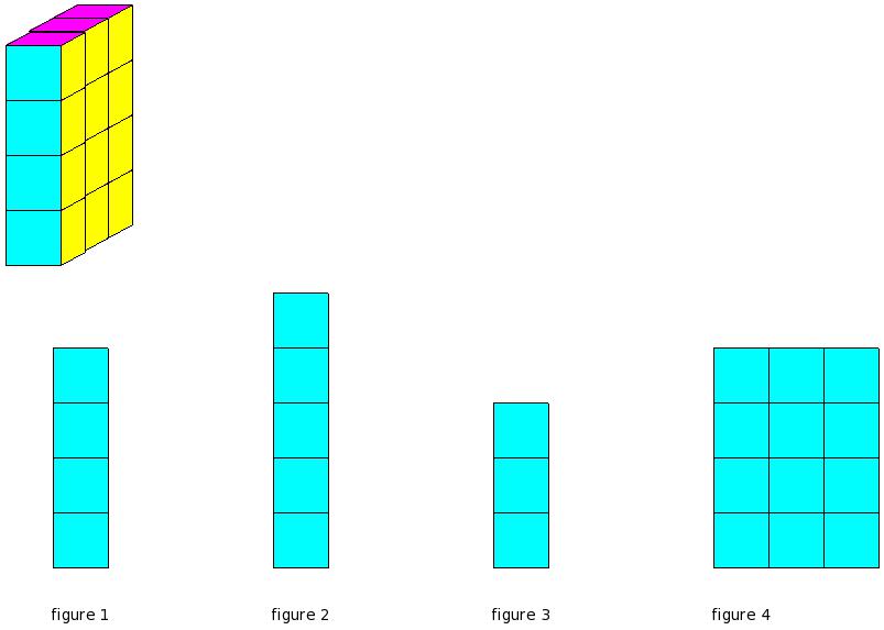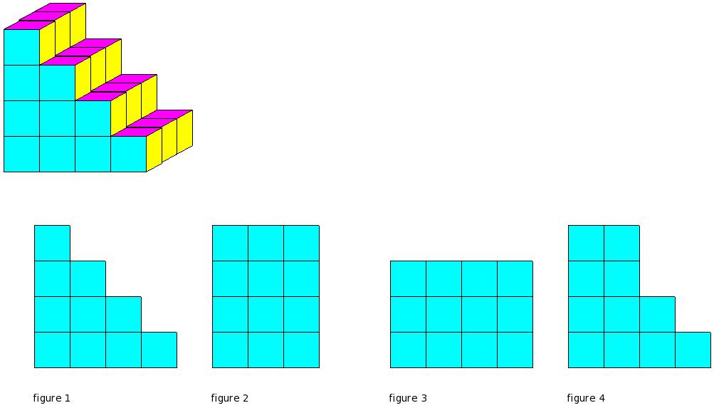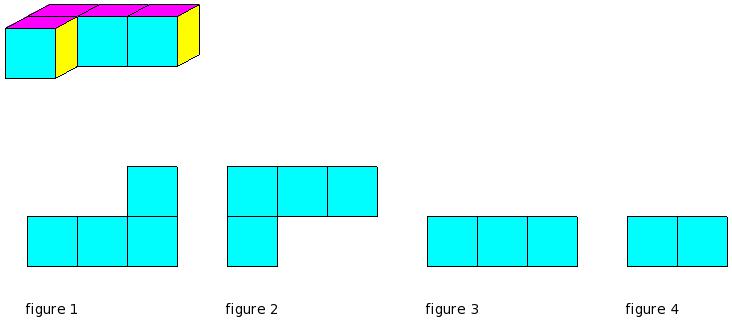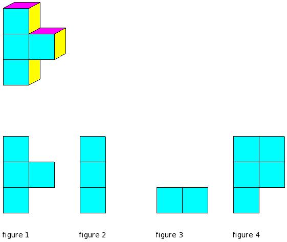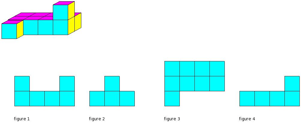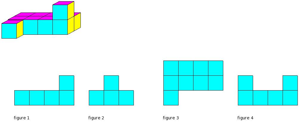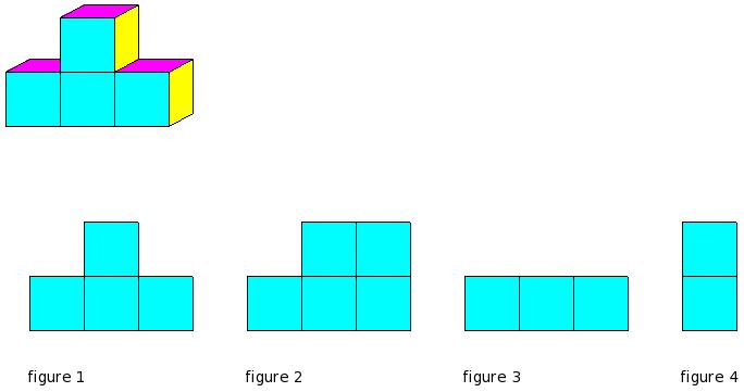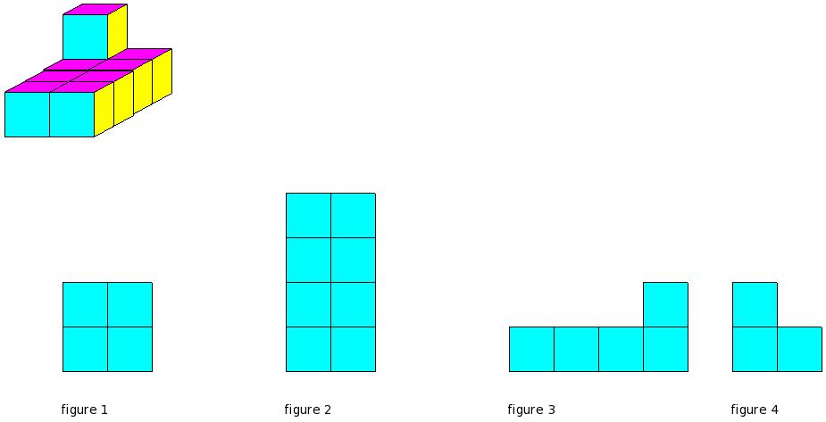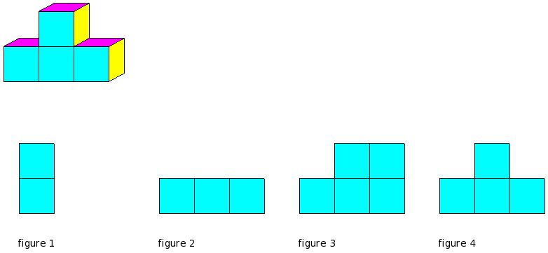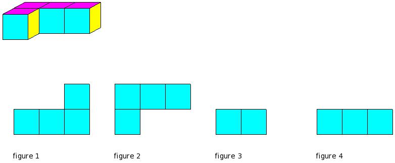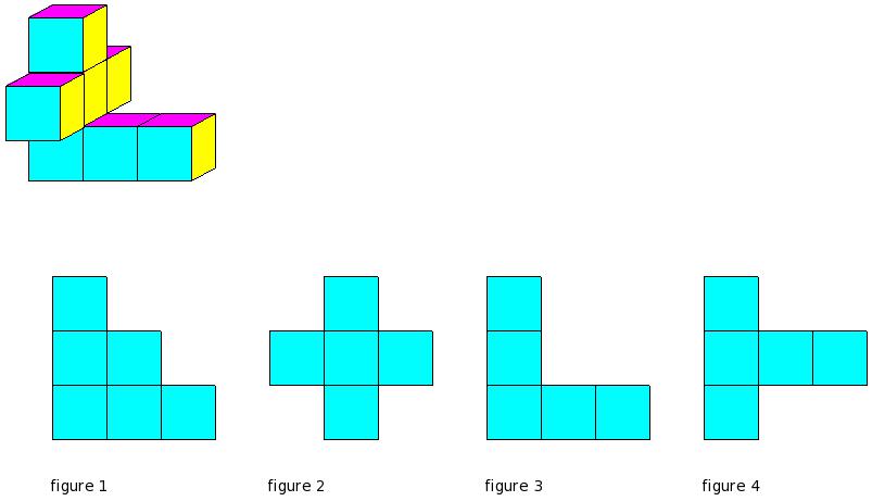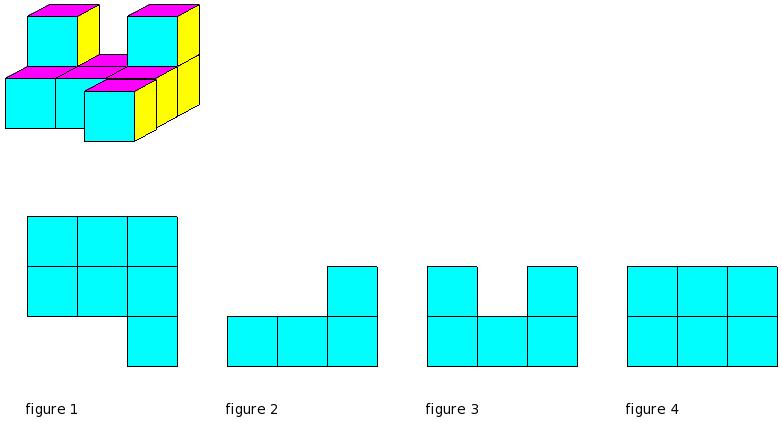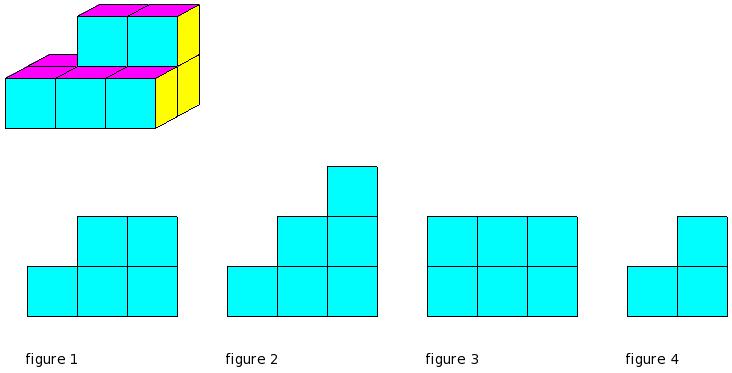 Which of the figures represent the front view of the given 3-D figure?