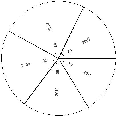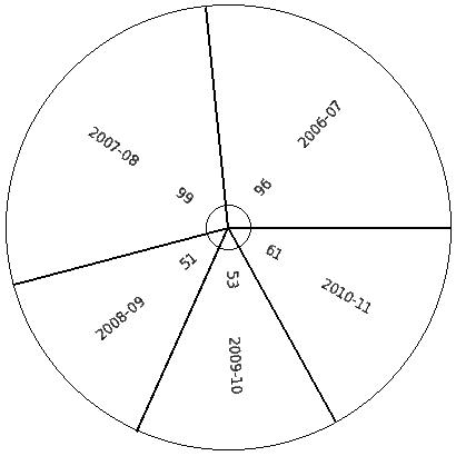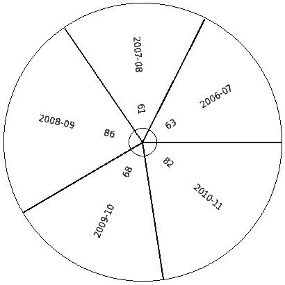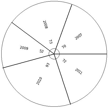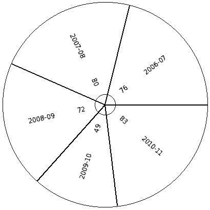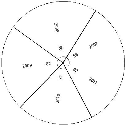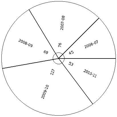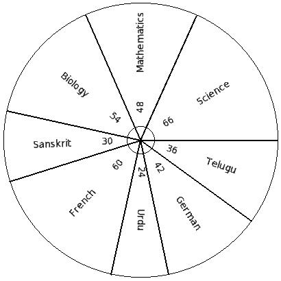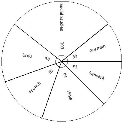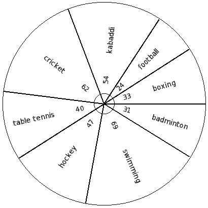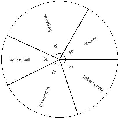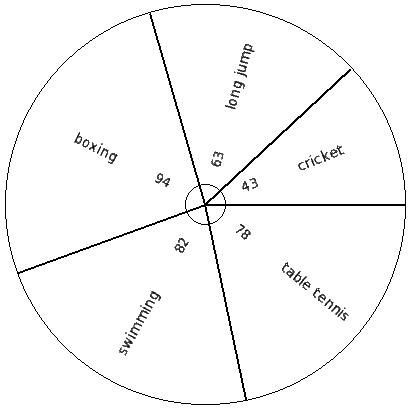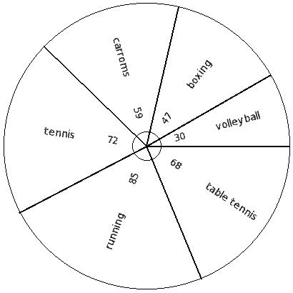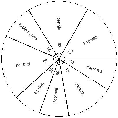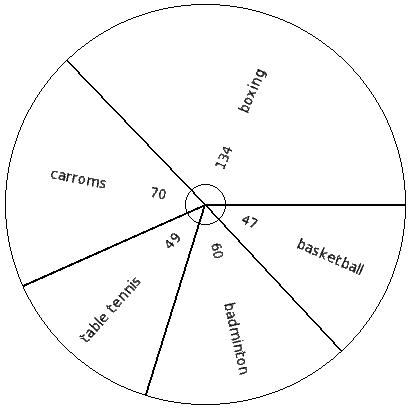 The following pie chart gives the data regarding the favourite sport of 765 students of a school. Identify the table for the given pie diagram.