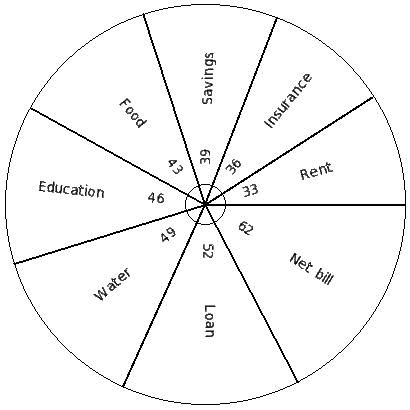 The following pie chart shows the monthly budget of a family. Identify the table for the given pie diagram.