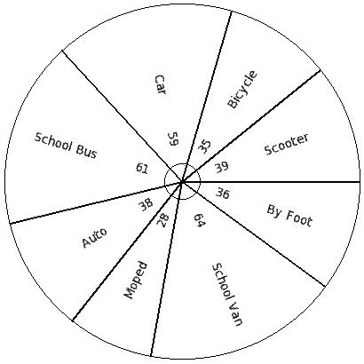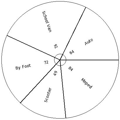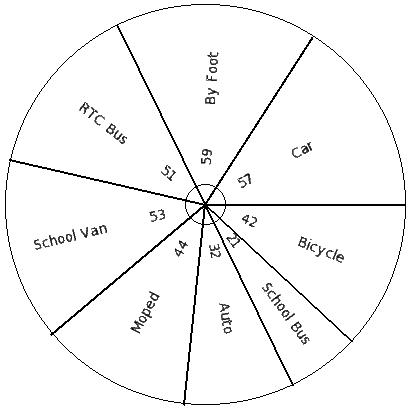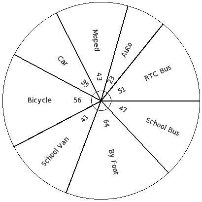 972 students of a certain locality use different modes of travel to school as shown below. Find the pie chart sector angle for "Scooter"