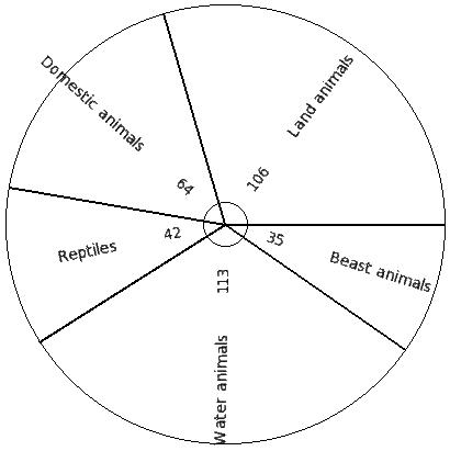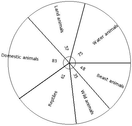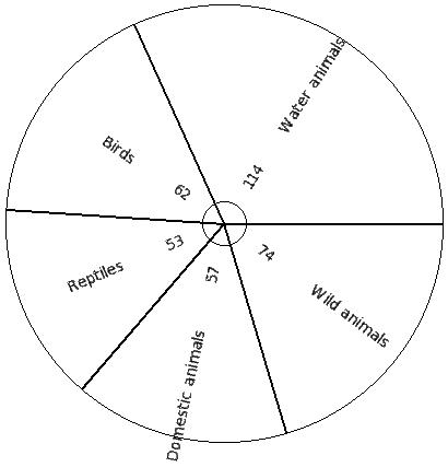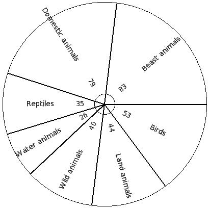 There are 5040 creatures in a zoo as shown below. Find the pie chart sector angle for "Wild animals"