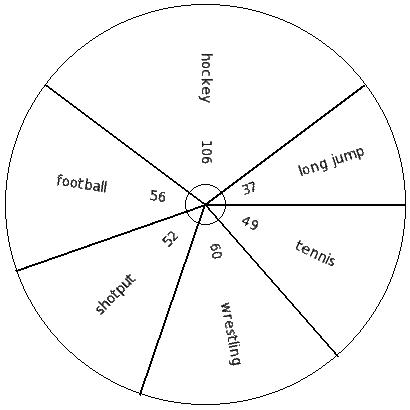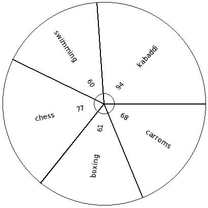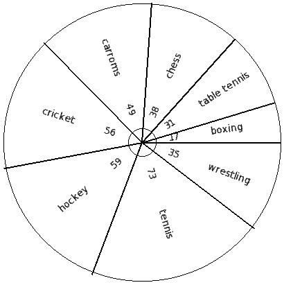 The following table shows 1692 students of a school participating in various games. Find the pie chart sector angle for "wrestling"