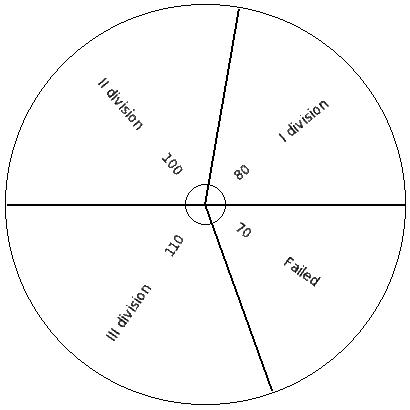 The results declared by a school was as under. Identify the table for the given pie diagram.
