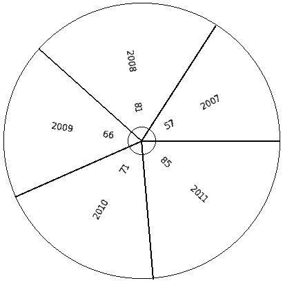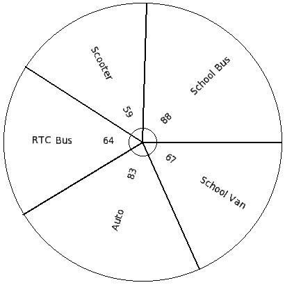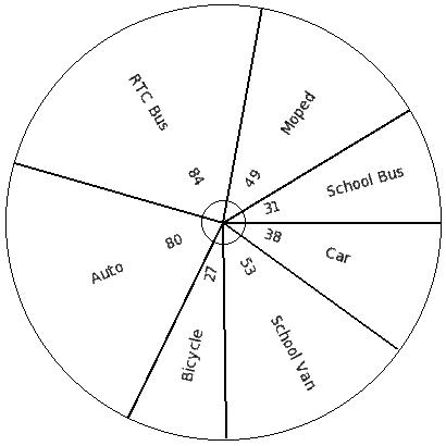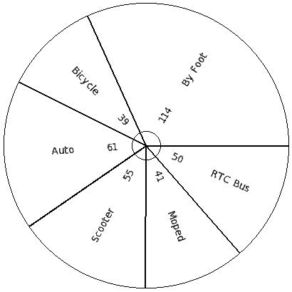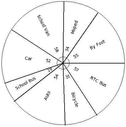 1530 students of a certain locality use different modes of travel to school as shown below. Find the pie chart sector angle for "Car"