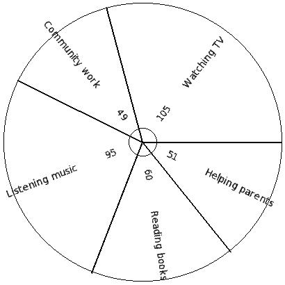 The table below shows the preferred free time activity of 1260 school students. Find the pie chart sector angle for "Reading books"