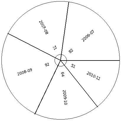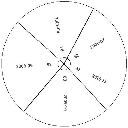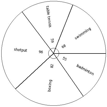 The following pie chart gives the data regarding the favourite sport of 927 students of a school. Identify the table for the given pie diagram.