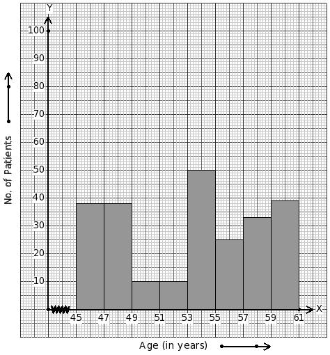 In a study of heart patients, the following observations are obtained. Identify the class interval table for the given histogram.