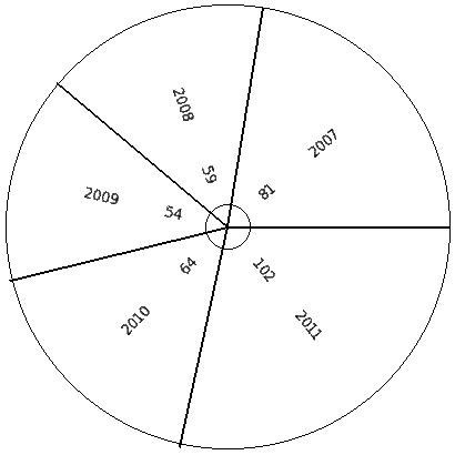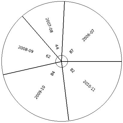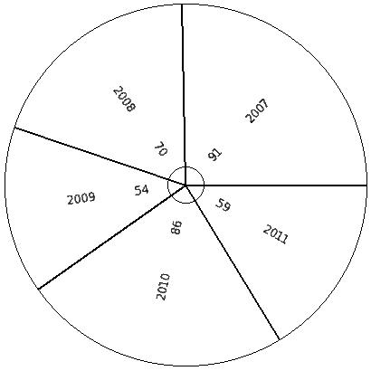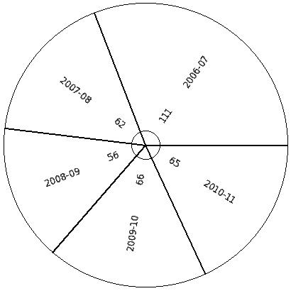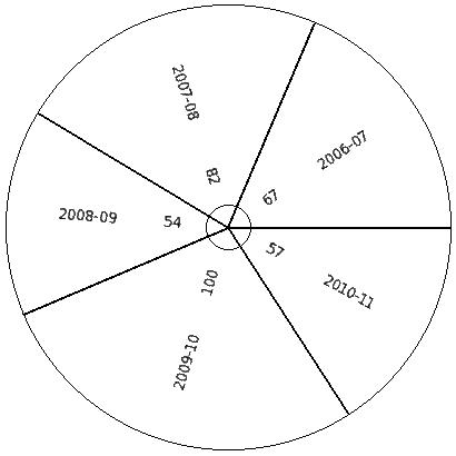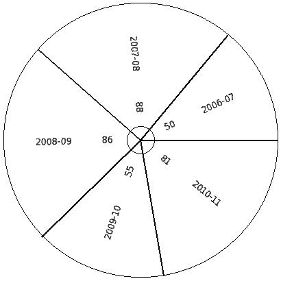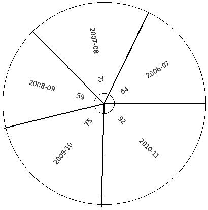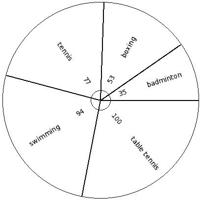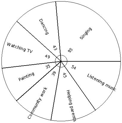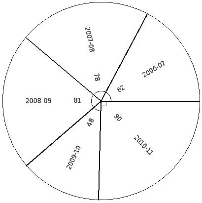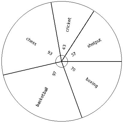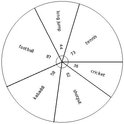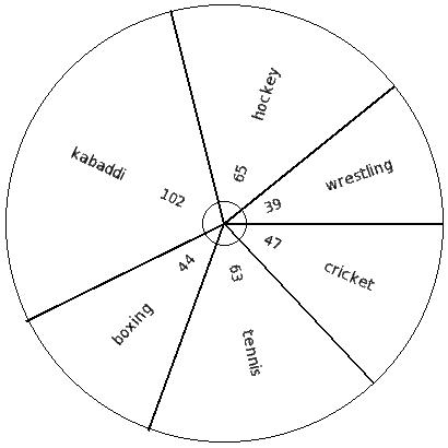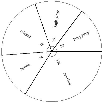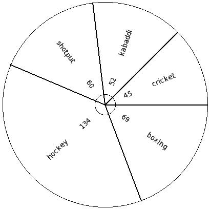 The following pie chart gives the data regarding the favourite sport of 549 students of a school. Identify the table for the given pie diagram.
