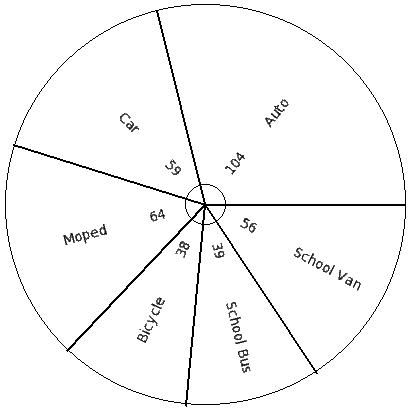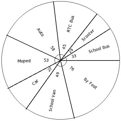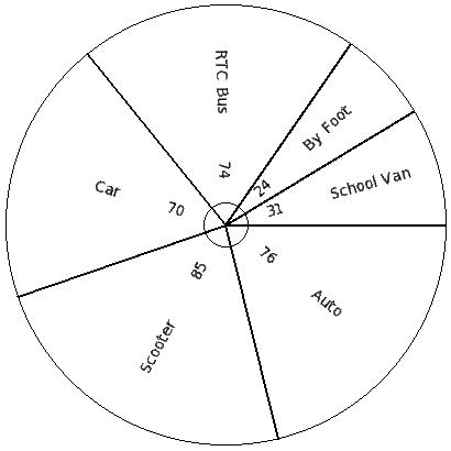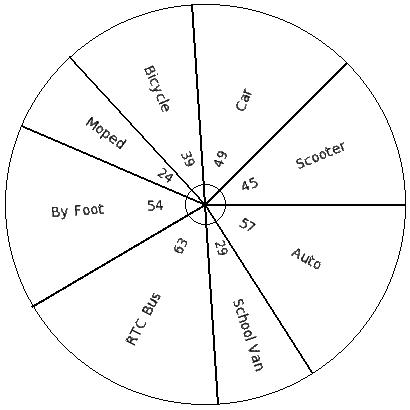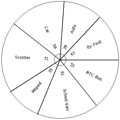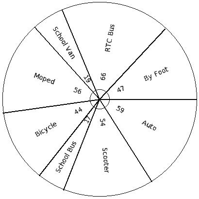 1620 students of a certain locality use different modes of travel to school as shown below. Find the number of students whose mode of travel is "Moped".