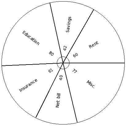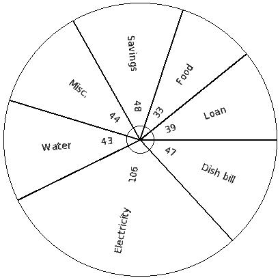 The following pie chart shows the monthly budget of a family. Identify the table for the given pie diagram.